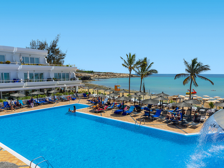 Direkt am Meer mit traumhaftem Blick über den Atlantik, in schöner, ruhiger Umgebung an einer offenen Badebucht mit Sandstrand (teilw. große und kleine Kieselsteine an der Wasserlinie). Der 25 km lange Sandstrand von Costa Calma bis Jandia beginnt direkt in Hotelnähe.