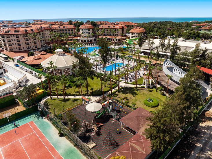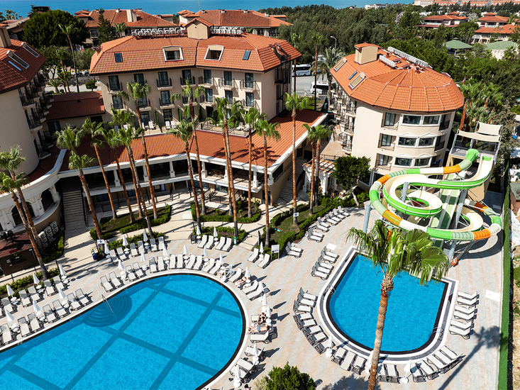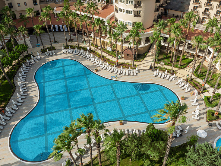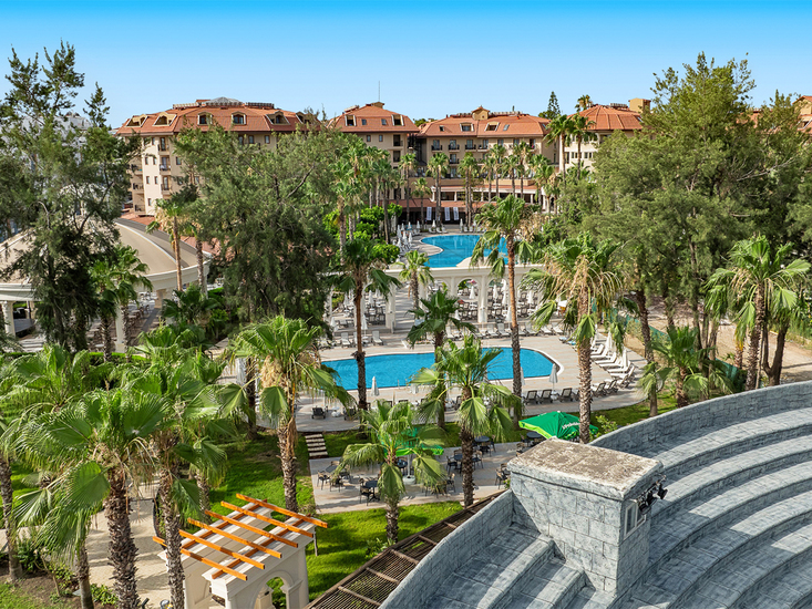 Die bekannte und beliebte Ferienanlage wurde im Winter 23/24 in allen öffentlichen Bereichen umfassend renoviert und wird seit Sommer 24 als allsun-Hotel geführt. Das Hotel besticht durch die großzügig angelegte Gartenanlage mit Schatten spendenden Bäumen, 2 Swimmingpools (davon 1 Relaxpool, vom 15.11-30.04 beheizt bei ca. 25-26⁰C.), Sonnenterrassen und Liegewiesen. Liegen, Schirme und Badetücher an Pool/Liegewiese und am Strand (Sonnendächer) inklusive. Snackbar und Poolbar. Kleiner Aquapark (stundenweise) mit 3 Wasserrutschen und separatem Pool. Terrassenförmig angelegte Strand-/Snackbar mit Panoramablick. Empfangshalle mit Rezeption, Lobbybar. WLAN in den öffentlichen Bereichen inklusive, Hauptrestaurant mit Außenterrasse, À-la-carte-Restaurant mit Außenterrasse (gegen Servicegebühr), diverse Bars, Friseur, Geschäfte. Amphitheater/Showbühne. Landeskategorie: 5 Sterne, 362 Zimmer, 4-5 Etagen, Lift.