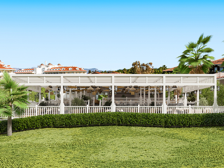Im beliebten Feriengebiet Side-Colakli; bis zum langen Sandstrand ca. 250 m. Zahlreiche Einkaufs- und Unterhaltungsmöglichkeiten sind fußläufig gut zu erreichen. Das historische Zentrum von Side mit antiken Ausgrabungsstätten, römischem Theater und zahlreichen weiteren Einkaufs- und Unterhaltungsmöglichkeiten ist ca. 10 km entfernt (Minibusverbindungen vorhanden).